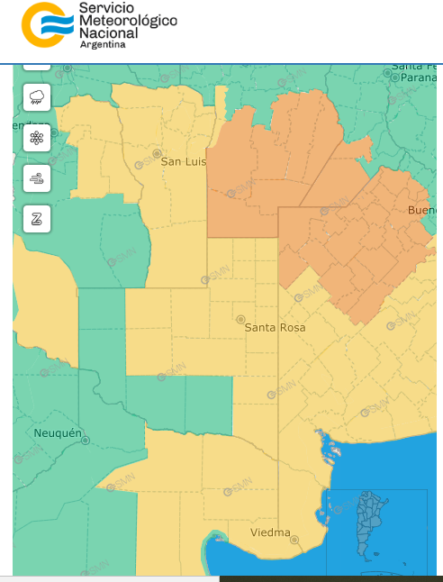 Durante las primeras horas del día, las condiciones serán en gran parte despejadas. A las 8:00 h ya se esperan unos 19 °C, a las 10:00 h alrededor de 27 °C y al mediodía la temperatura podría alcanzar los 32 °C. Sobre el mediodía y hasta el comienzo de la tarde la inestabilidad irá en aumento: hacia la 13:00/14:00 se prevén posibles nubes crecientes y luego, entre las 14:00 y 17:00, una alerta amarilla del Servicio Meteorológico Nacional abarca la zona, advirtiendo por lluvias y tormentas de variada intensidad, algunas localmente fuertes. Estas podrían venir acompañadas de ráfagas de hasta 90 km/h, aparato eléctrico frecuente y posible granizo.